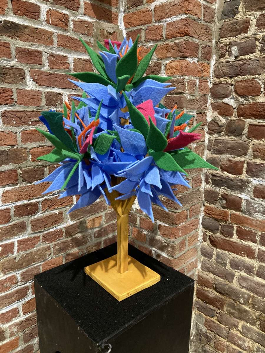 Naast de installatie Kapituhan (zie interview) maakte Barry voor Het Bos een editie uit gerecycleerd hout en stof. De titel is Piedidin, wat ‘bloem’ betekent, maar anders dan een gewoon boeket is elk exemplaar uniek en eeuwigdurend – net als jullie liefde dus!