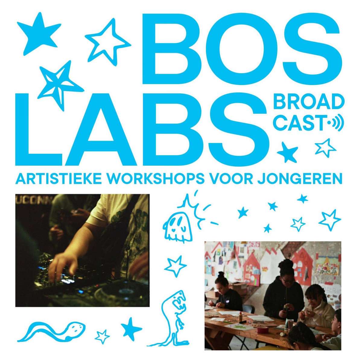 Boslabs, het creatieve atelier van Het Bos, brengt vrijwilligers, kunstenaars en jongeren met verschillende culturele achtergronden, nationaliteiten en talen samen. Ontmoeting staat centraal, iedereen leert van elkaar! Boslabs is een ruimte voor jongeren, een plek om naar terug te komen. Boslabs Broadcast voorziet een divers programma: beeldende workshops (oa schilderen, tekenen,...), muziekworkshops (oa radio maken, dj'en... tijdens Radio Boslabs), textiel workshops en er is vaak ook een creatief gastatelier (oa fotografie, koken, film,... ). Tijdens Boslabs Broadcast brengen we het beste wat in ons zit, naar buiten!